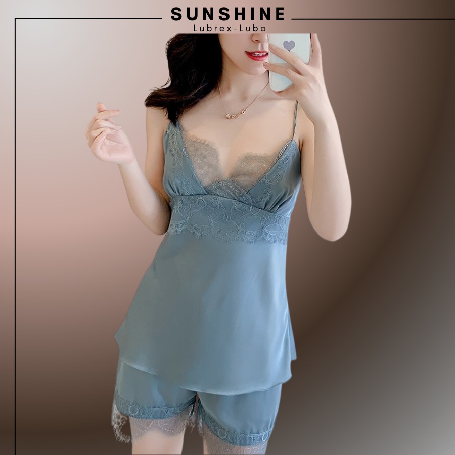 Thời Trang Nữ > Đồ ngủ > Pyjama > Đồ bộ nữ mặc nhà chất LỤA mềm mại thoáng mát thấm hút mồ hôi Set đồ mặc nhà dễ thương quần cộc áo 2 dây SUNSHINE MNT230