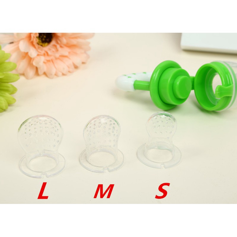 Đặc điểm sản phẩm: - Sản phẩm mới 100%, chất lượng cao Dễ dàng sử dụng: Cắt trái cây hoặc rau củ thành từng miếng bằng kéo. Vặn tay cầm ra để đặt miếng thức ăn vào lưới lọc trước khi đóng nắp tay cầm. Các bé sẽ cầm vào phần tay cầm và hút lưới lọc silicon để thưởng thức đồ ăn. Phần dư sẽ được loại bỏ sau khi hút hết. - Để bé tự ăn. Hãy để em bé của bạn hấp thụ đủ các loại dinh dưỡng ngoài sữa mẹ. - Để bé thích nghi với nhiều mùi vị khác nhau ngay từ nhỏ và tránh những thói quen xấu là kén chọn thức ăn. - Rèn luyện cơ nhai của bé, thư giãn cảm giác khó chịu do mọc răng và tăng cường sự phát triển của não. - Đồ lọc silicon với dạng lưới có kích thước phù hợp đảm bảo sử dụng dễ dàng và an toàn. -Thích hợp cho bé trên 6 tháng tuổi sử dụng, sản phẩm cũng là một sản phẩm thích hợp khi bé mọc răng. Chất liệu: Silicone ăn được, PP Kích thước: S - Thích hợp cho bé > 4 tháng tuổi. M - Thích hợp cho bé > 6 tháng tuổi. L - Thích hợp cho bé > 8 tháng tuổi. Khối lượng: 35g /cái Gói hàng bao gồm: 1 cái