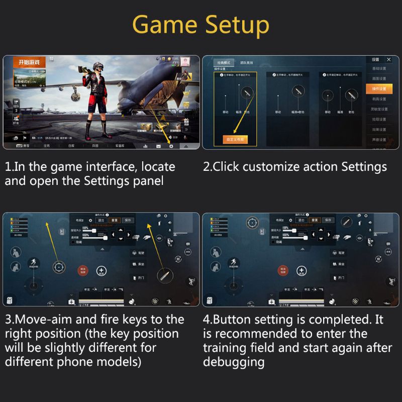 Features: Touch-sensitive shooting left hand movement, right hand aim Left upper shot It is recommended to use 4.6-6.5 inch mobile phone Fingers can gently touch contact sensitivity Most touch screen devices Not limited to mobile phones and thickness.