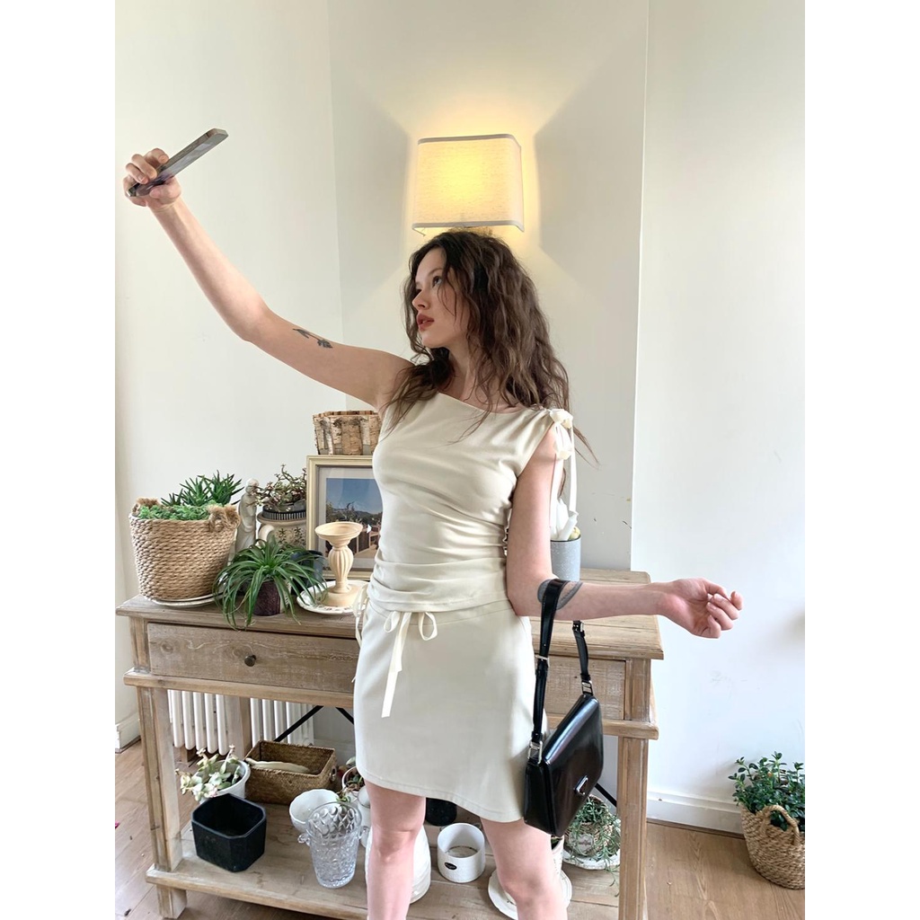Giới thiệu Honypove Bộ Áo Ba Lê Cột Dây Phối Chân Váy Chữ a Phong Cách Hàn Quốc Thời Trang Mùa Hè 2023
