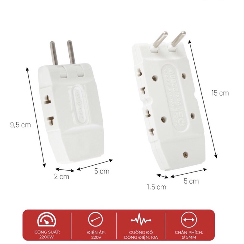 Ổ cắm chia 1 ra 5 và 1 ra 3 chịu tải 2200W Sopoka Q5T và Q3T