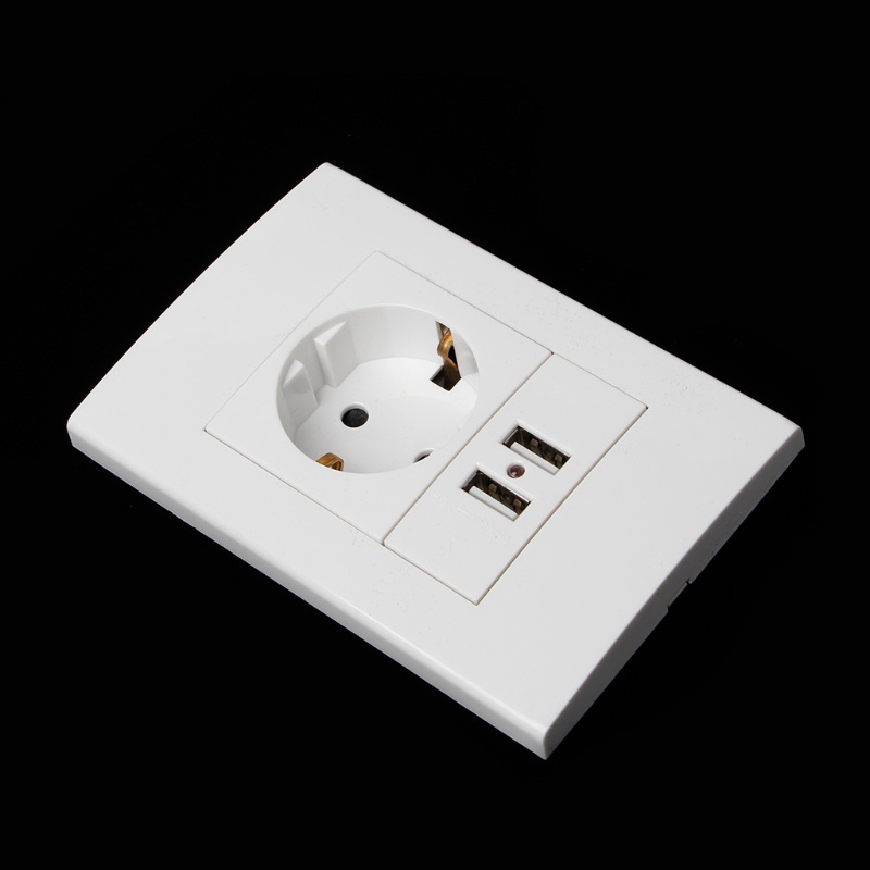 Ổ cắm điện treo tường 16A Ổ cắm điện tiêu chuẩn EU Bộ sạc USB kép 1000mA Tính năng '