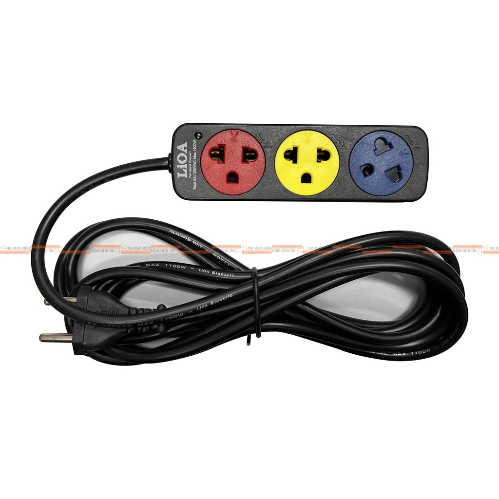 Giới thiệu Ổ cắm điện LiOA, 3 lỗ, ~1100W/220VAC MAX 5A, dây dài 3m/5m, mã: 3TN