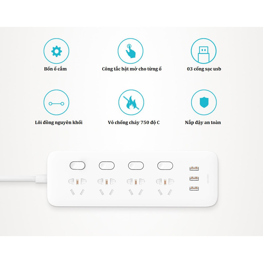 Ổ cắm Xiaomi MiJia Power Strip (4 ổ cắm điện, 4 công tắc bật tắt, 3 cổng usb)