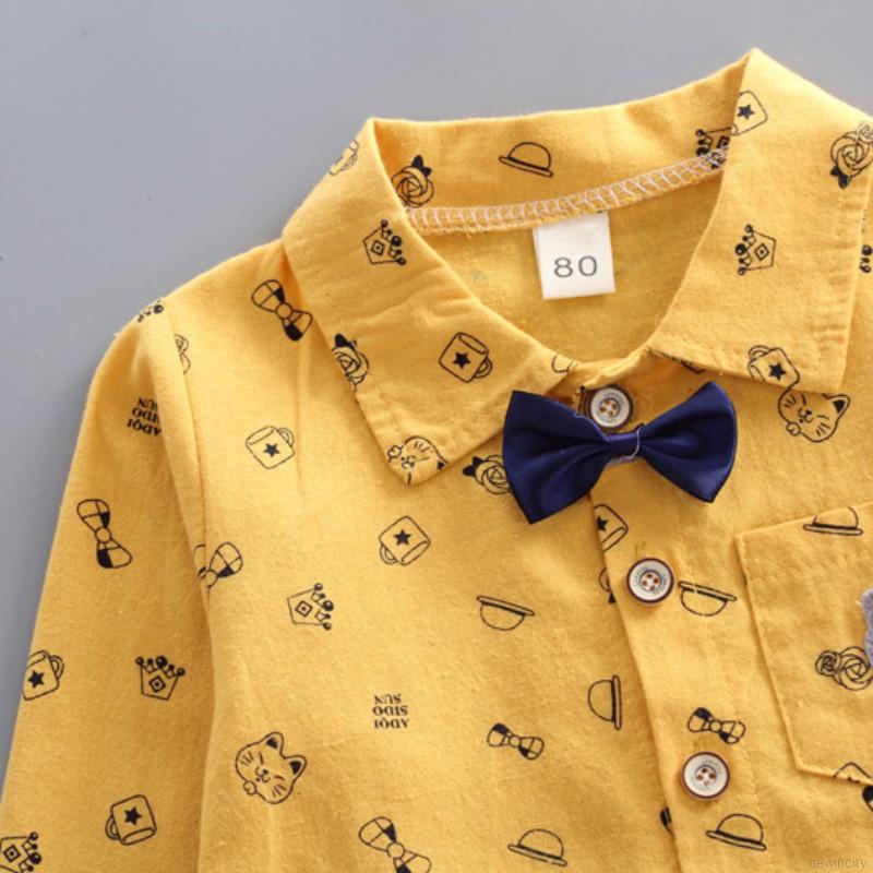 Cartoon print cotton long sleeve shirt and casual trousers, which will make your kids look cool and attractive