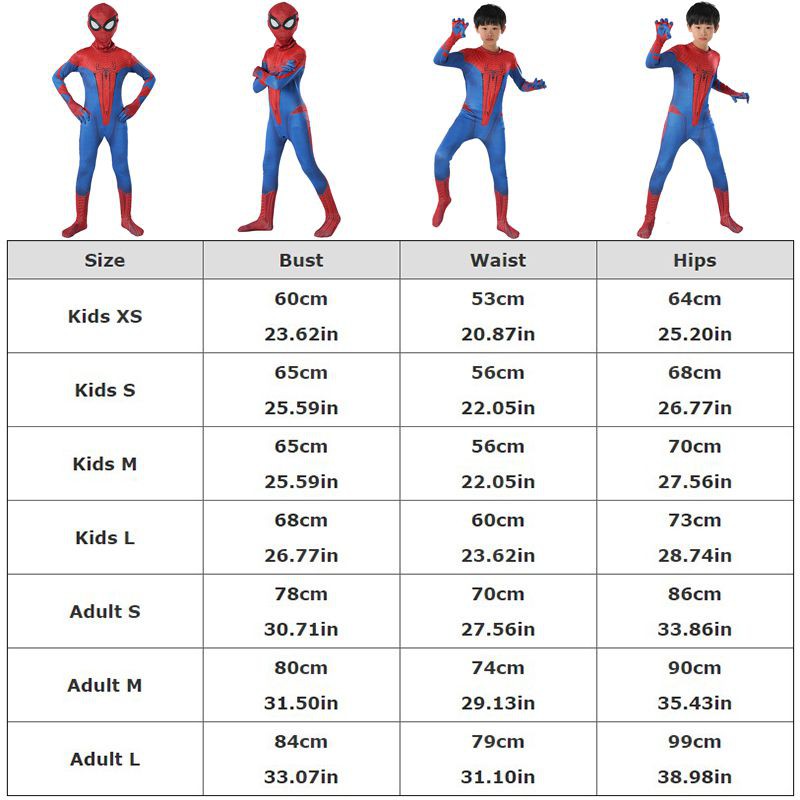 Description: Spider superhero cosplay tights, Spiderman zentai suit. Material with stretch, skin-friendly, fadeless, no odour. Comfortable to wear. Convenient to wear and take off. Unisex for boys, girls and adults.