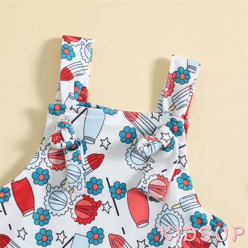 Bé gái mới biết đi Mùa hè Sling Romper Không tay Bộ đồ chơi in hoa Popsicle