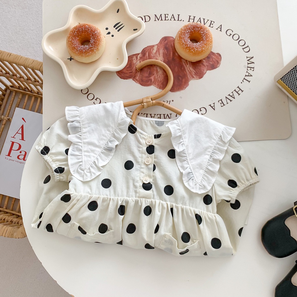 Giới thiệu Bộ Áo Liền Quần Vải Cotton Tay Ngắn Họa Tiết Chấm Bi Thời Trang Mùa Hè Cho Bé