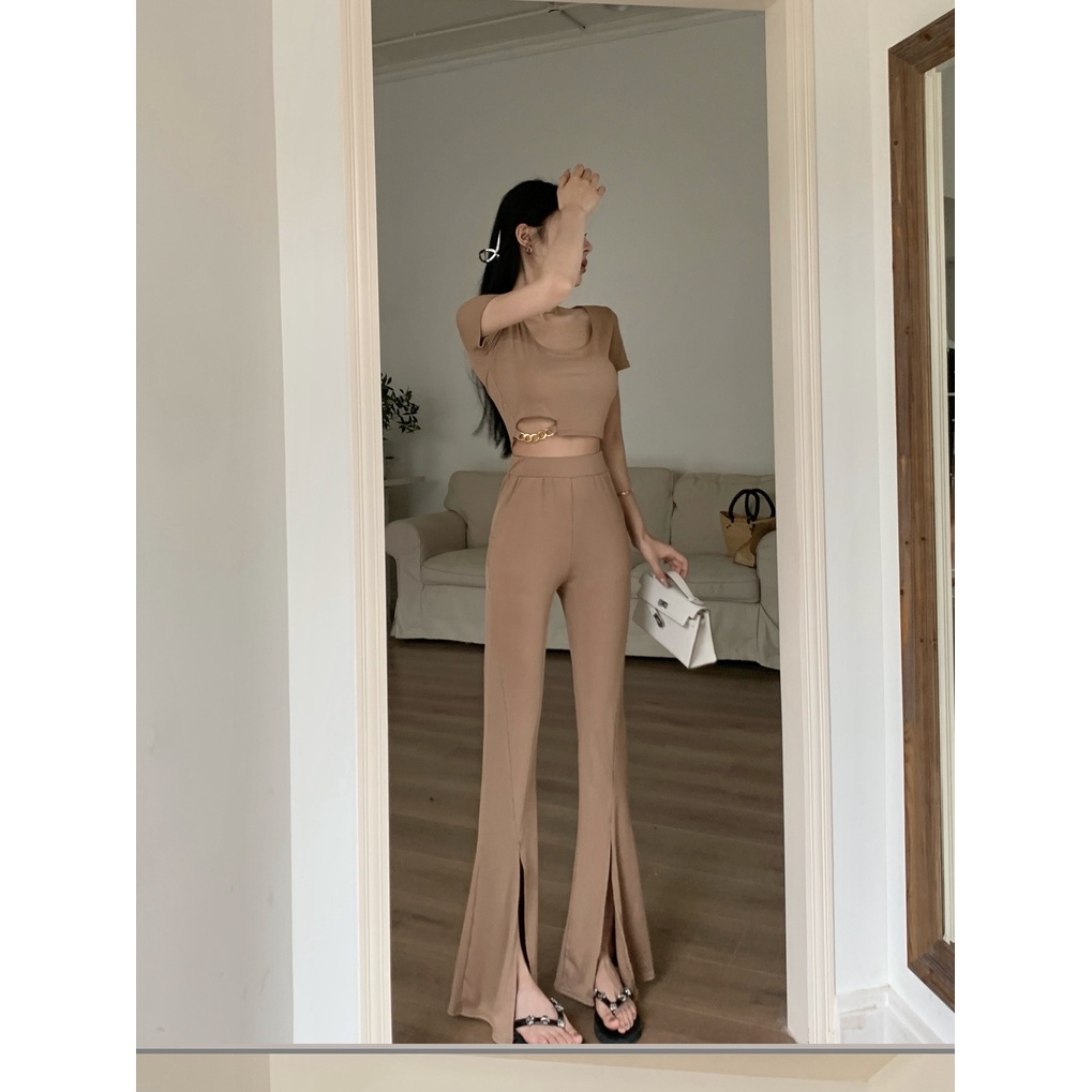 Giới thiệu Bộ Áo Lửng Và Quần Dài Lưng Cao Xẻ Tà Thời Trang Mùa Hè Quyến Rũ Cho Nữ