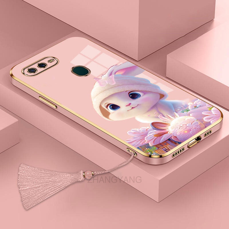 ốp lưng oppo a5s a12 a7 f9 Ốp Điện Thoại Tpu Dẻo Mạ Màu Gradient In Hình Thỏ Kèm Dây Đeo Cho oppo a5s a12 a7 f9
