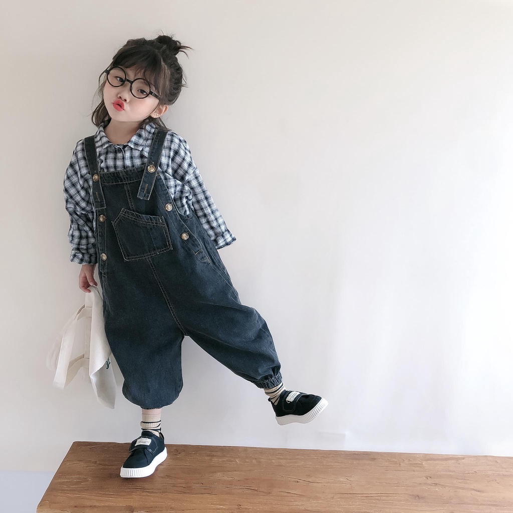 Giới thiệu Bộ Áo Sơ Mi Denim + Quần Yếm Thời Trang Xuân Thu 2022 Phong Cách Hàn Quốc Cho Bé Gái