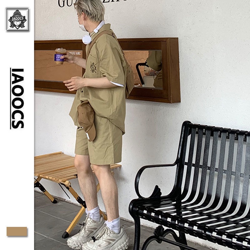 Giới thiệu Bộ Áo Sơ Mi Ngắn Tay Thêu Chữ + Quần Lửng Phong Cách Retro Cho Nam Nữ
