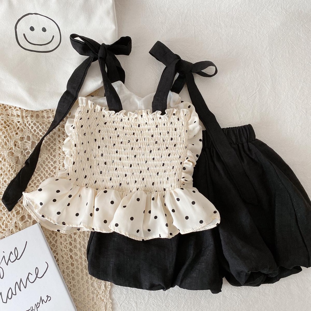 Giới thiệu Bộ Áo Thun + Quần Short Họa Tiết Chấm Bi Phong Cách Hàn Nhật Hàng Mới Dành Cho Bé Gái