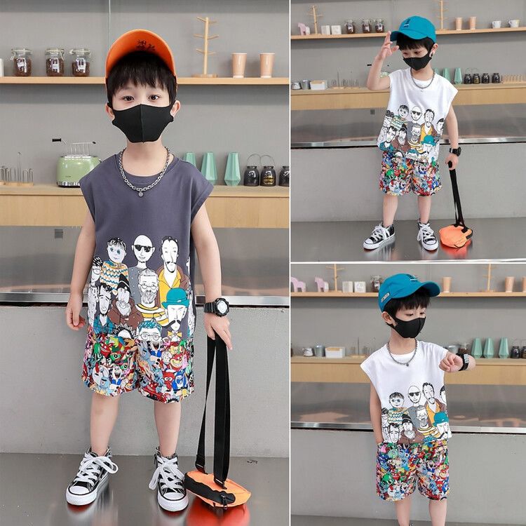 Giới thiệu Bộ Áo Thun Sát Nách + Quần Đùi Họa Tiết Hoạt Hình Cho Bé Trai