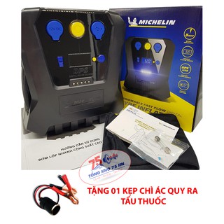 Combo Bơm lốp tự ngắt Michelin 12266 Model + Bộ chuyển điện từ 220v-12v cao cấp - Chính hãng BH 12 tháng