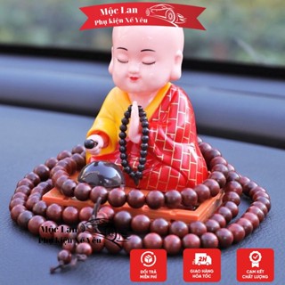 (tặng vòng hạt 108) Tượng phật chú tiểu gõ mõ tụng kinh để taplo trang trí xe hơi ô tô