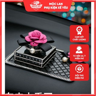 set nước hoa đính đá để taplo ô tô gắn bông hoa trà sang trọng quý phái cho xế yêu của bạn