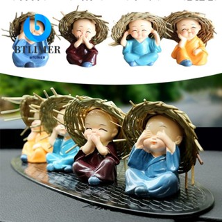 BTLIMER Bộ 4 Mô Hình Tượng Chú Tiểu Đội Nón Rơm Dễ Thương Trang Trí Nhà Cửa