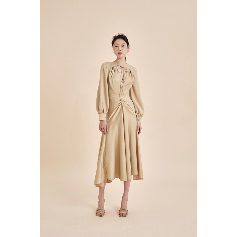 OPHELIA DRESS Form: Đầm lụa dài tay, tay phồng. Thân trước có nhún tạo điểm nhấn. Tà váy dài xoè, xếp ly. Váy có đính cúc ngọc trai . Chất liệu: Silk Màu sắc: Hoạ tiết hoa in độc quyền Số đo: S: Ngực: 85-88cm - Eo: 64cm . M: Ngực: 89-92cm - Eo: 68cm . Dài váy: 125cm . Dài tay: 60cm
