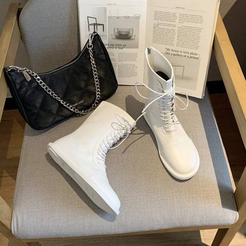 Giới thiệu Oeteo Giày Bốt Da Mềm Đế Bằng Buộc Dây Phối Khóa Kéo Cá Tính Cho Bạn Gái