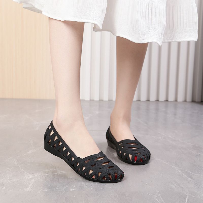 🌈 Phiên bản này của bàn chân mỏng [ bình thường ] được đề xuất một kích thước Xuất xứ : Trung Quốc đại lục Trên :PVC Đế giữa :PVC Đế ngoài :PVC Chiều cao gót : 2,5cm Màu đen. tím. mơ