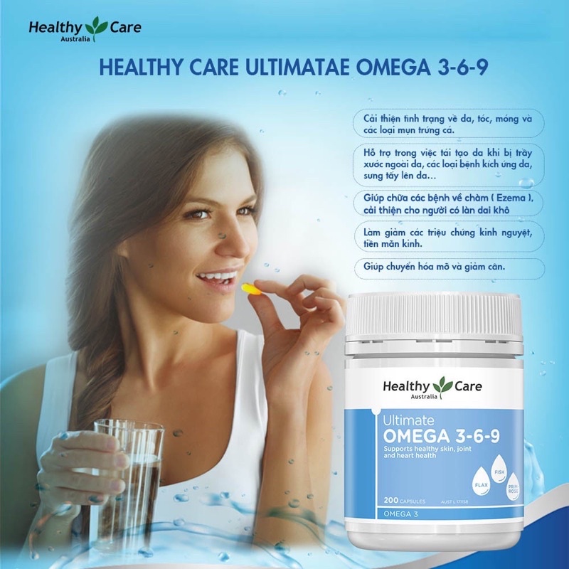 VIÊN UỐNG HỖ TRỢ TIM MẠCH, HUYẾT ÁP HEALTHY CARE OMEGA 3 6 9 ULTIMATE 200 VIÊN