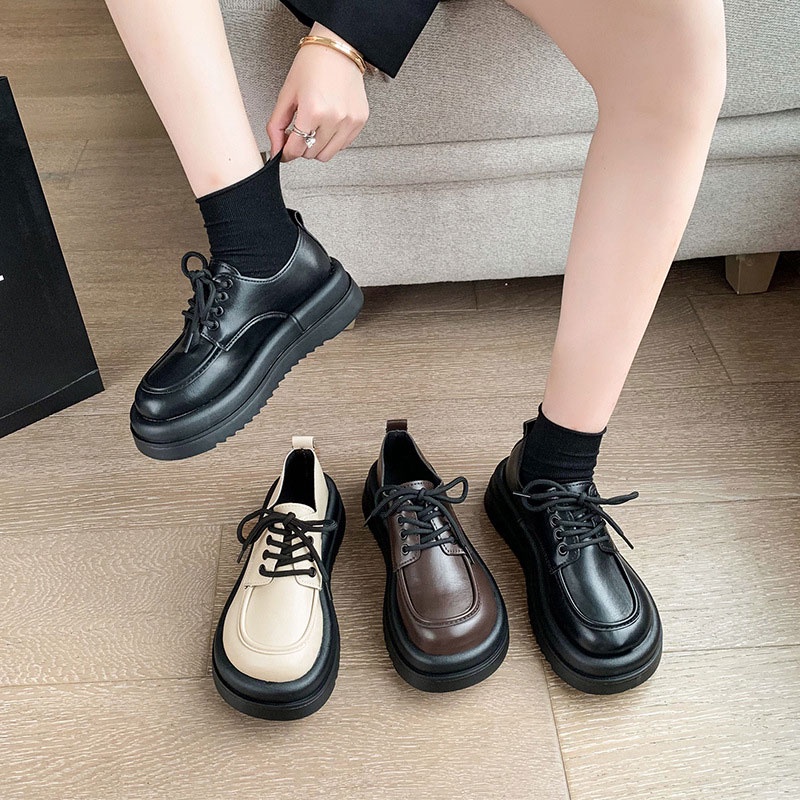 Giới thiệu One more shoes Giày Da Đế Dày Buộc Dây Mềm Mại Thoải Mái Phong Cách retro Pháp Cho Nữ