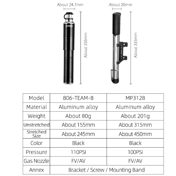 Thông tin chi tiết sản phẩm: Thương hiệu: ROCKBROS Chất liệu: Hợp kim nhôm Phù hợp: Xe đạp đường trường, Xe đạp MTB Chất liệu: Ống bên trong và bên ngoài được làm bằng hợp kim nhôm Màu sắc: Đen, Bạc Loại sản phẩm: Ống bơm xe đạp Tương thích: ống bơm cho MTB, MBX, xe đạp đường trường Dành cho: Schrader, Presta Valve Thiết kế: Thiết kế có khóa dễ dàng