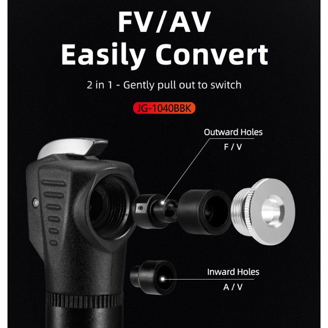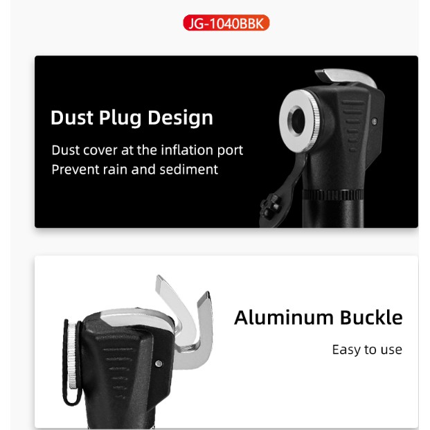 Đặc trưng sản phẩm: 1. Chất liệu nhẹ 2. Kích thước mini nhỏ gọn 3. Ống bơm tích hợp 4. AV / FV 5. Bơm cao áp 100PSI 6. Tay cầm có thể gập lại tiện dụng