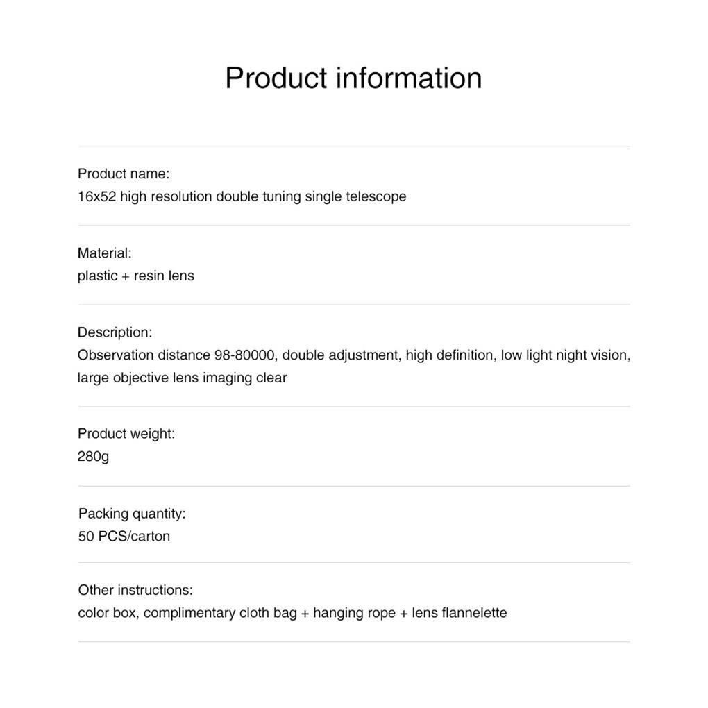 Sản phẩm Ống Nhòm 16X52 Hỗ Trợ Tầm Nhìn Ban Đêm Chất Lượng Cao đang có giá bán là 141,475đ. Hiện tại, đang có hàng sẵn tại shop của chúng tôi trên sàn TMĐT Shopee. Quý khách có thể ĐẾN NƠI BÁN để vào shop chúng tôi đặt mua online, trả góp, ship hỏa tốc, thanh toán thẻ visa/master, thông tin xuất hóa đơn đỏ (VAT) hay cần có thêm nhiều thông tin về sản phẩm.