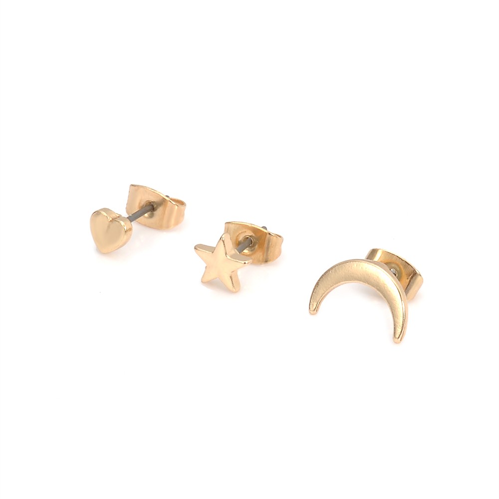 Trang sức Punk Đơn giản Vàng nhỏ / Bạc / Màu đen Hình ngôi sao Mặt trăng đáng yêu Hình trái tim Đinh tán Bộ hoa tai cho phụ nữ Tiệc nữ Quà tặng bạn gái Kích thước: 1,1 * 0,6cm Chất liệu: hợp kim Màu sắc: Đen / Vàng / Bạc Gói hàng bao gồm: 1 bộ bông tai