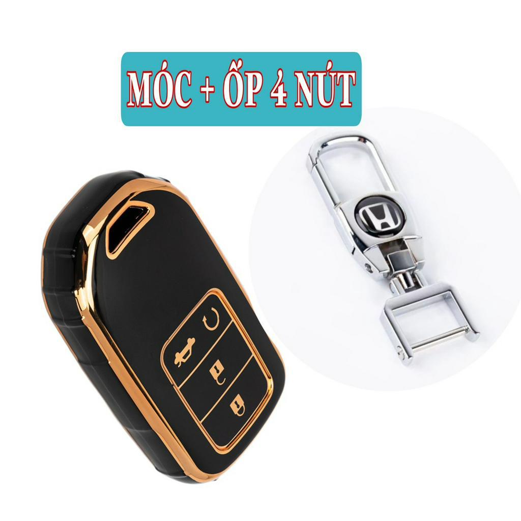 Móc khóa kèm ốp bảo vệ chìa khóa xe Honda CRV, HRV, Civic, City, Brio, Jazz 2021 2020 2019 2018 nhựa mềm TPU mạ kim loại.