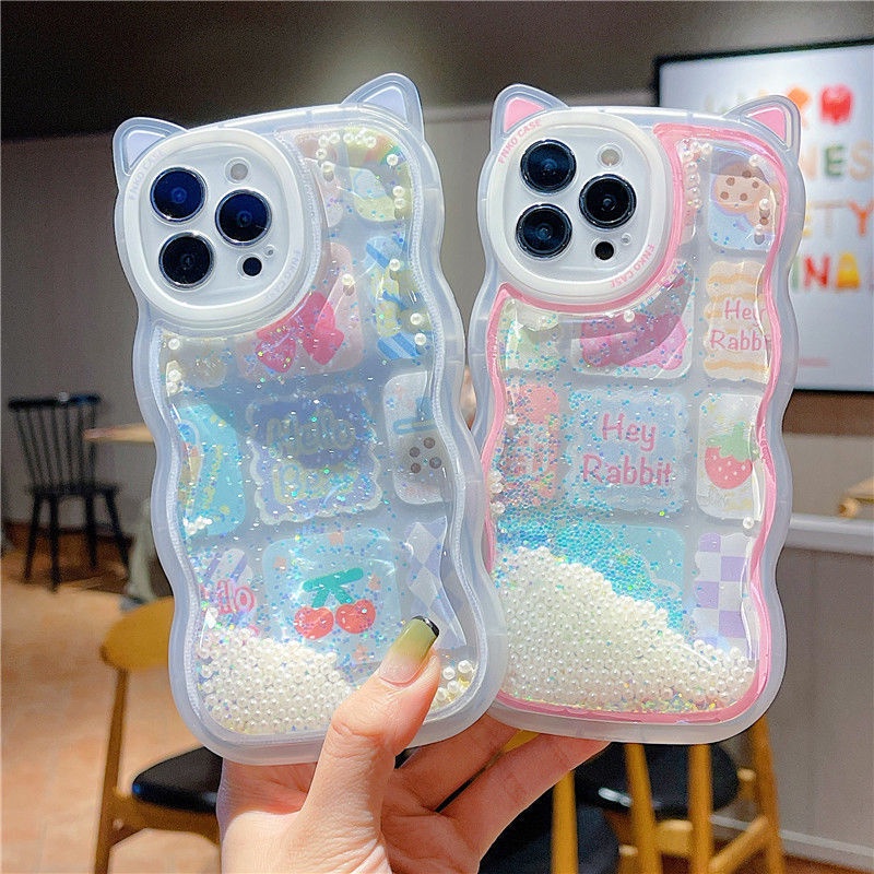 Ốp Điện Thoại Cát Chảy Hình Tai Mèo Cho iPhone 12 13 11 Pro Max X Xs Max Xr poje