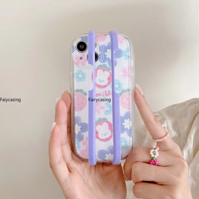 Ốp Điện Thoại Có Giá Đỡ Hình Thỏ Dâu Tây Cho iPhone 14 11 12 13 pro MAX XS MAX 8 7 6 6S Plus X 5S SE XR