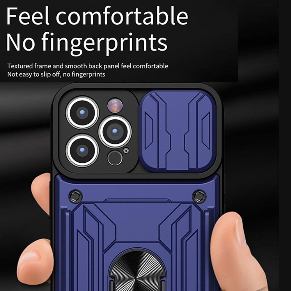Đặc điểm: 1.Khung cong và mặt sau mịn tạo cảm giác thoải mái, không dễ tuột ra, không bám dấu vân tay, 2.Vỏ điện thoại di động, giá đỡ thẻ, bảo vệ camera giá đỡ nhiều trong một. 3.Bao đựng thẻ miễn phí thắt lưng, ngăn đựng thẻ có thể tháo rời. 4.Giá đỡ kẹp ngón tay vô hình, được cải thiện ổn định, thoải mái hơn khi sử dụng. 5.Bulit trong lực hút từ tính, ổn định và không bị rơi, có thể được sử dụng với tất cả các loại xe từ tính. 6.Đi kèm với giá đỡ vòng, điều chỉnh góc theo ý muốn. 7.Thiết kế cửa sổ đẩy ống kính, vỏ trượt không có khe hở, dễ dàng trượt và không bị lỏng. 8.Đồ thật, bảo vệ mạnh mẽ nhiều lớp. 9.Truy cập vào tất cả các cổng, điều khiển và cảm biến. Các nút cảm thấy nhạy cảm