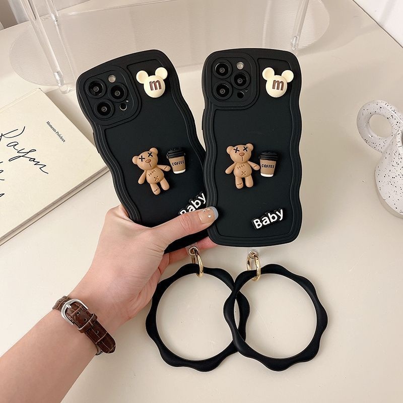 Thiết KẾ Búp bê đậu gấu đen M ✅✅✅ Tương thích với iPhone 14 12 13 11 Pro Max X Xs Max Xr