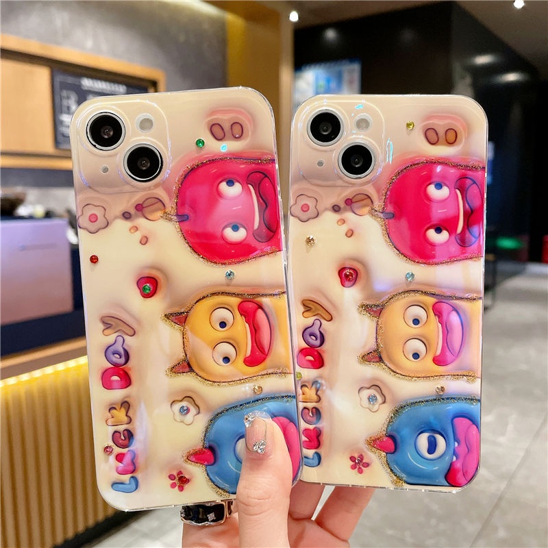 Thiết KẾ: Máy bay 3d mắt khỏa thân Thiết kế ba quái vật nhỏ ✅✅✅Tương thích với iPhone 12 13 11 Pro Max X Xs Max Xr