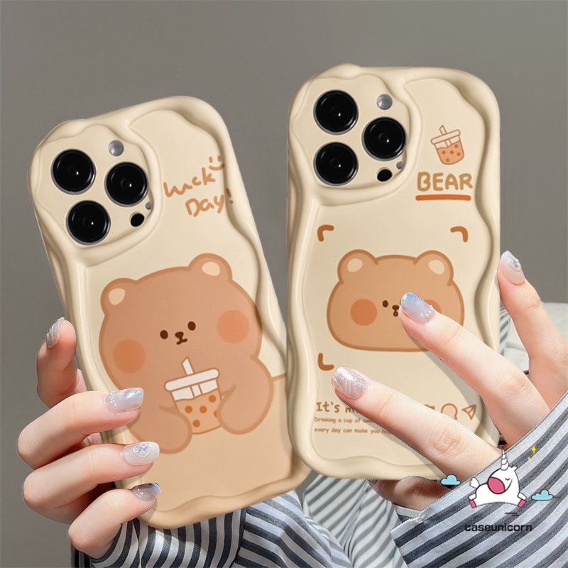 Ốp lưng cho Samsung A14 A52 A12 A13 A04s A50s A04 A50 A24 A30s A23 A32 A10s A52s A03s A21s A11 A31 A20 A51 A02s A20s A30 A03 Gấu trà sữa dễ thương Phim hoạt hình 3D cong lượn sóng