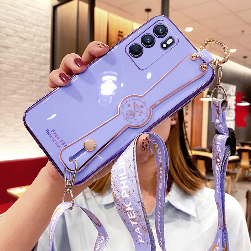 Điện Thoại & Phụ Kiện > Ốp lưng, bao da, Miếng dán điện thoại > Ốp lưng, bao da, miếng dán mặt lưng cho Điện thoại > Ốp Điện Thoại Mềm Họa Tiết Đính Đá Kèm Dây Đeo Cổ Cho oppo A16