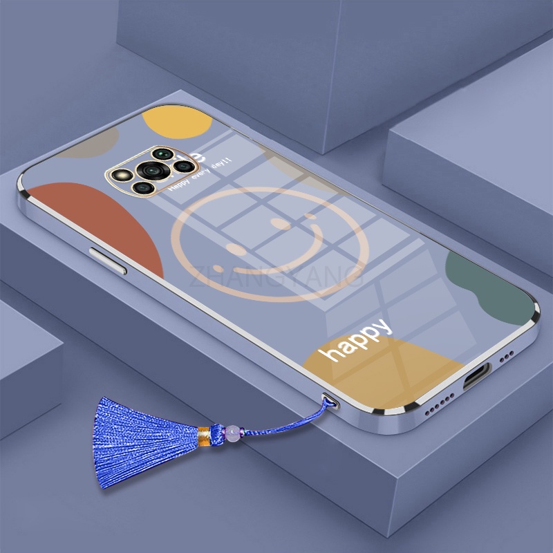 Điện Thoại & Phụ Kiện > Ốp lưng, bao da, Miếng dán điện thoại > Ốp lưng, bao da, miếng dán mặt lưng cho Điện thoại > Ốp Điện Thoại Silicon TPU Mạ Điện Họa Tiết Mặt Cười Kèm Dây Đeo Tua Rua Cho POCO X3 PRO X3 NFC X3