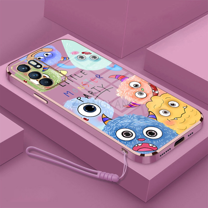 Ốp Điện Thoại TPU Silicon Mềm Mạ Điện Hình Quái Vật Nhỏ Có Dây Đeo Cho oppo reno 6 4g reno 6 5g reno 6 z 5g