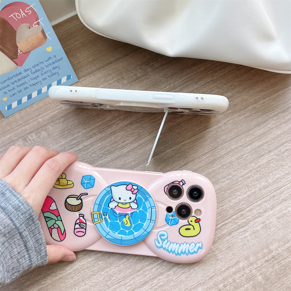 Ốp Điện Thoại Tpu Silicone Dẻo Tích Hợp Gương Hình Kuromi Kitty Cho iPhone 12 11 14 13 Pro Max Đứng