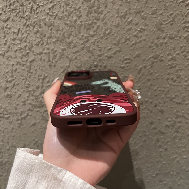 Vỏ điện thoại ống kính kim loại Strawberry Bear cho IPhone 13 pro max 12 11 pro max 12 mini 13 mini 11 pro max Graffiti Dinosaur Bảo vệ máy ảnh Mặt sau trong suốt