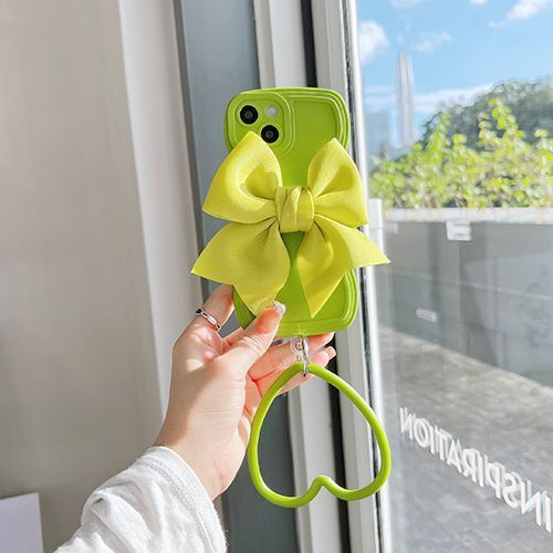Điện Thoại & Phụ Kiện > Ốp lưng, bao da, Miếng dán điện thoại > Ốp lưng, bao da, miếng dán mặt lưng cho Điện thoại > Ốp Điện Thoại Viền Gợn Sóng Ba Chiều Màu Xanh Lá Đính Nơ Có Vòng Đeo Tay Cho Iphone 14promax 11