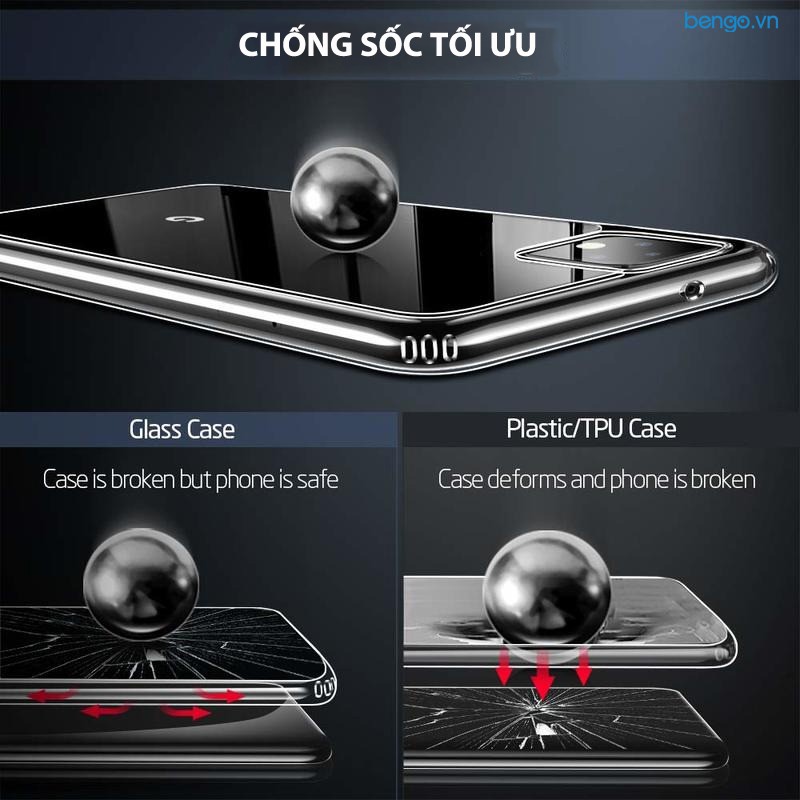 Hấp thụ lực tác động Viền nhựa dẻo (TPU) mềm hỗ trợ hấp thụ lực tác động lên điện thoại tốt hơn khi vô tình bi rớt (xu hướng cấn vô góc cao) nhằm bảo vệ góc để chống bể màn hình hay móp méo.