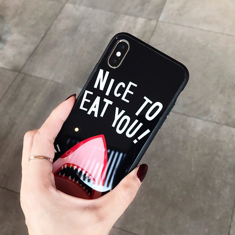 Giới thiệu ốp lưng iphone 7 plus nice to eat you hàm cá mập mặt lưng kính viền dẻo cho iphone 6 7 8 xs 11 pro max k280