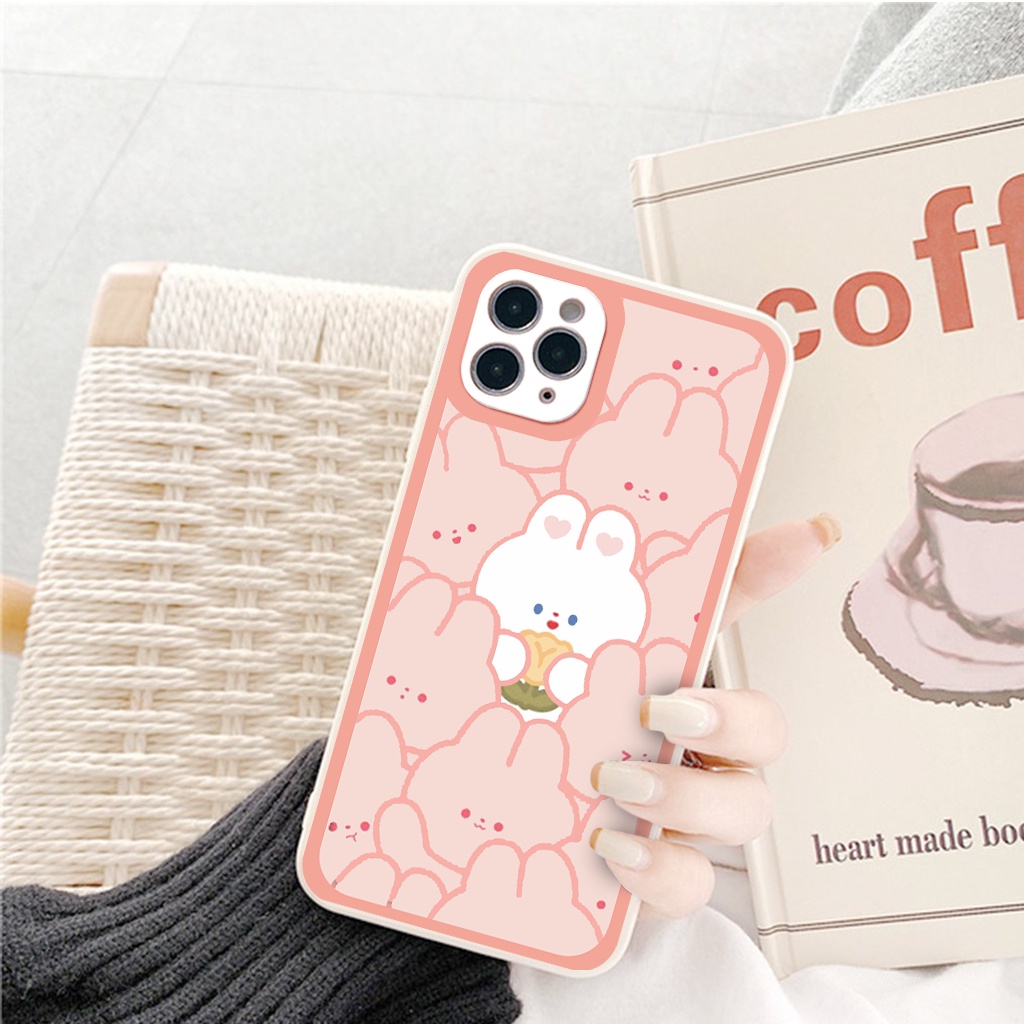 Ốp lưng iphone cạnh vuông viền camera Thỏ gấu hồng mini dành cho ip 6 đến 13promax - g93