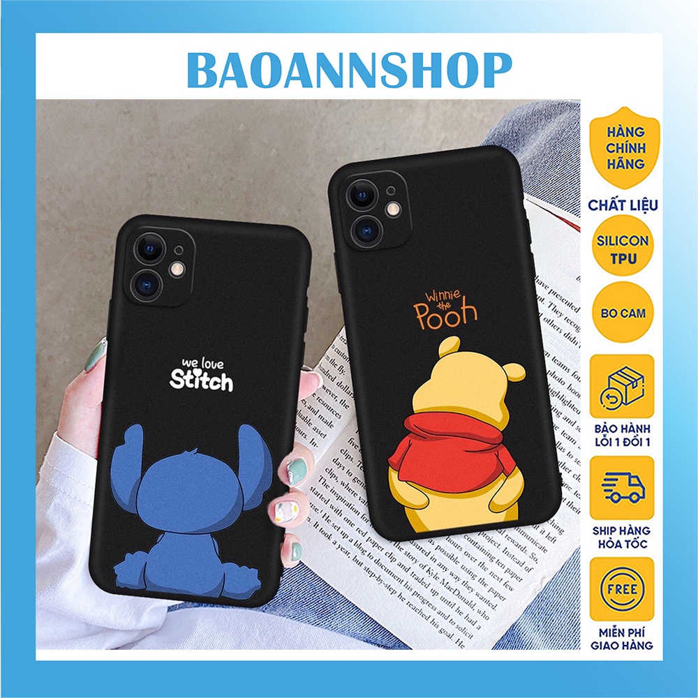 Ốp lưng iphone hình gấu Stitch và Pooh dẻo cạnh vuông bảo vệ camera 7plus/8plus/x/xs/xsmax/11/12/13/14/pro/promax