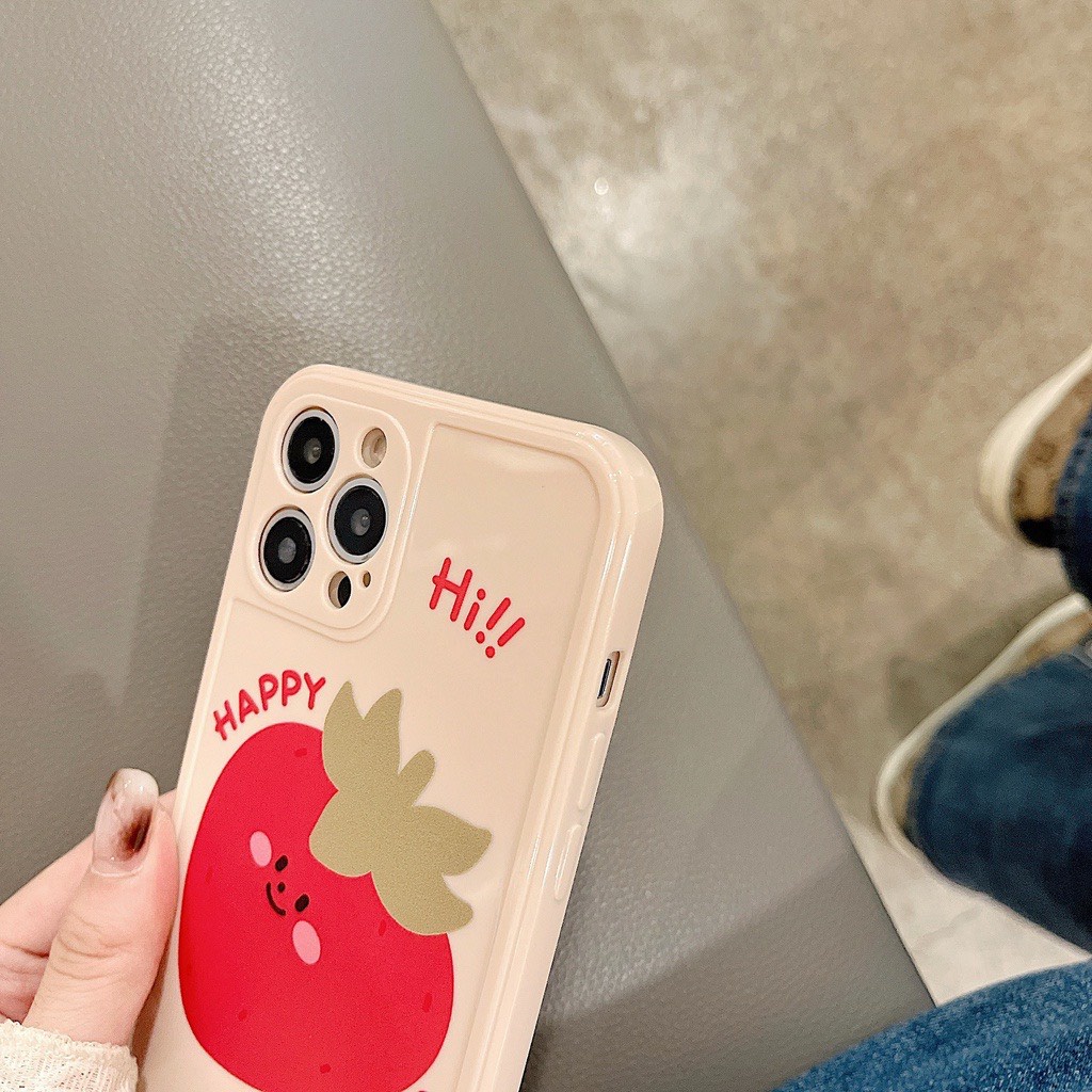 Điện Thoại & Phụ Kiện > Ốp lưng, bao da, Miếng dán điện thoại > Ốp lưng, bao da, miếng dán mặt lưng cho Điện thoại > Ốp lưng iphone hình trái dâu happy D12 dẻo viền vuông bảo vệ camera cho ip 7plus/8plus/x/xs/xsmax/11/12/13/14/promax