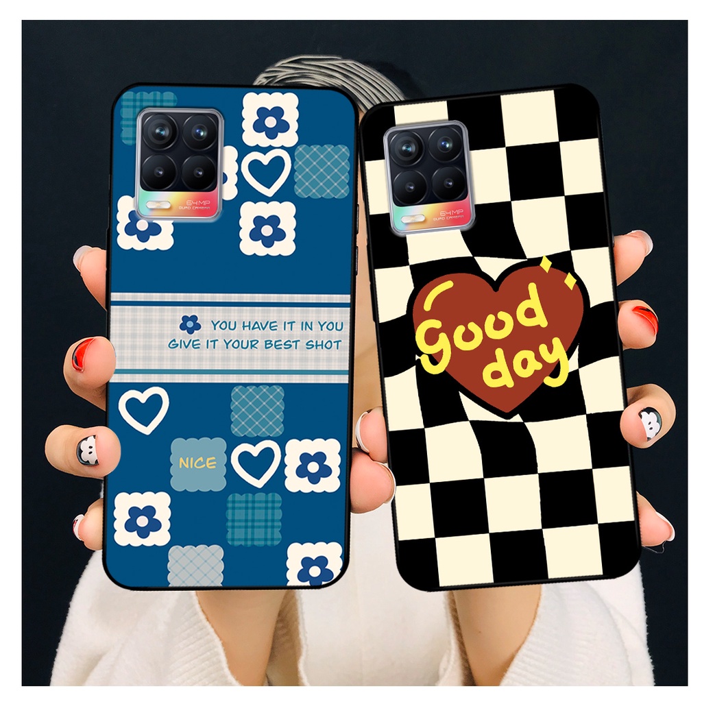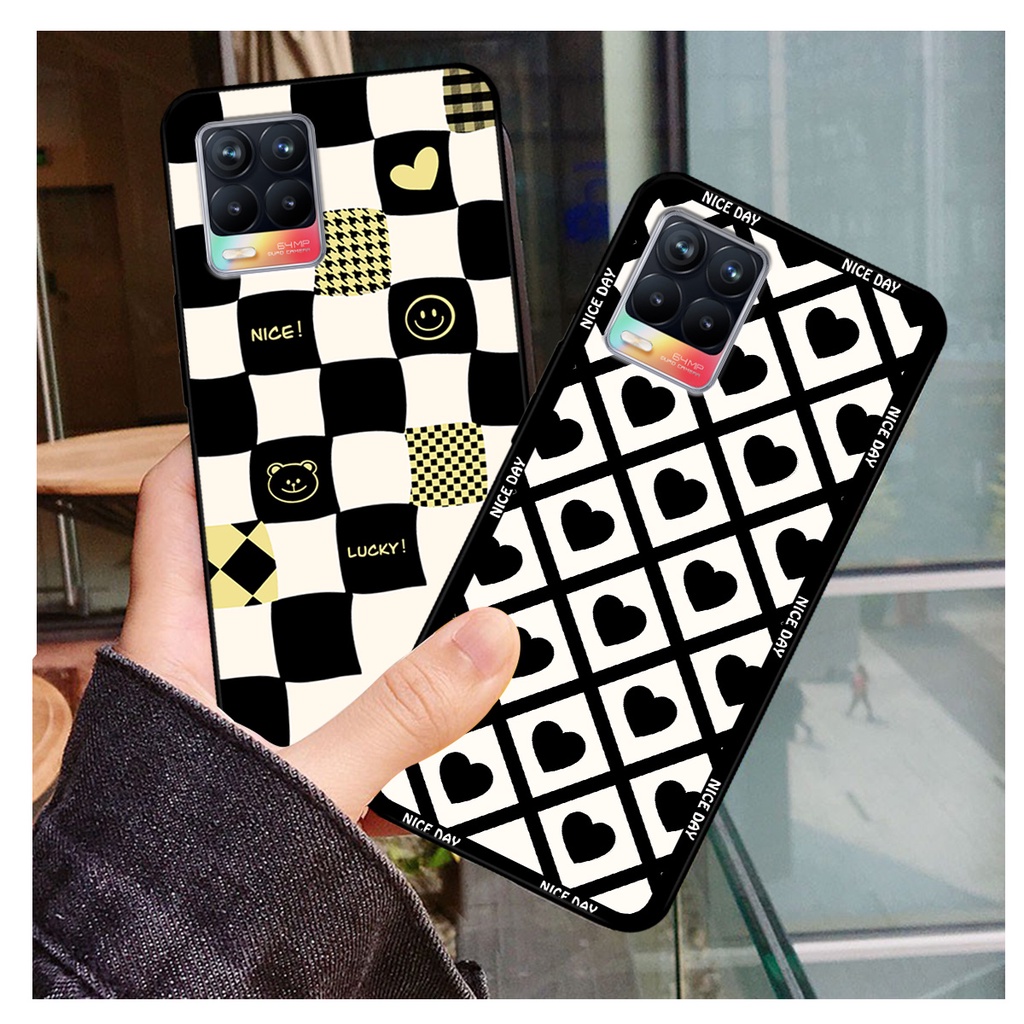 Giới thiệu Ốp lưng Realme 8 - Realme 8 Pro in hoạ tiết caro trái tim đen trắng, gấu bear cute đáng yêu